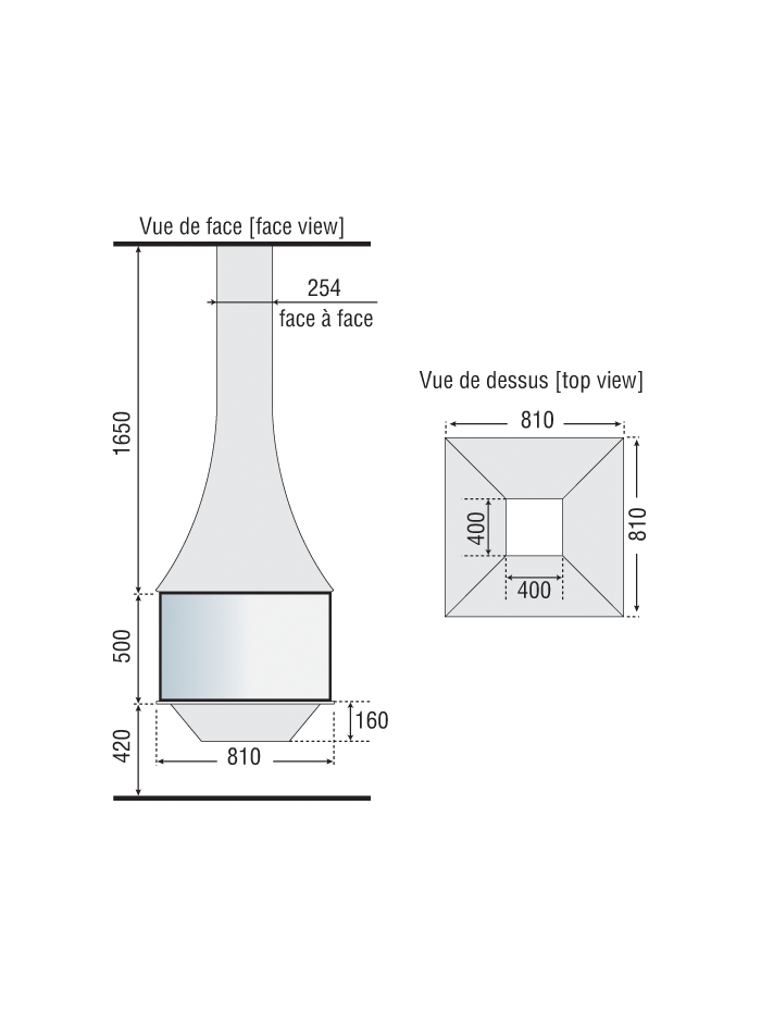 Conserver l’esprit du dessin et apporter de la performance, sont la volonté à l’origine de cette création. Du mariage d’une cheminée et d’un poêle à bois est née cette cheminée 985 central black line. La version suspendue donne aux flammes une belle hauteur, les grandes vitres permettent de voir le feu tout autour de cette cheminée. Les vitres sérigraphiées, dont elle tire son qualificatif « black line », permettent d’agrandir la vision des flammes. Cette cheminée peut recevoir des bûches de 50 cm, ce qui est rare pour un poêle à bois. Son design, avec cette hotte métallique, l’apport des vitres, et la présence d’un déflecteur caché, lui donnent des performances de chauffage équivalent à un poêle à bois.