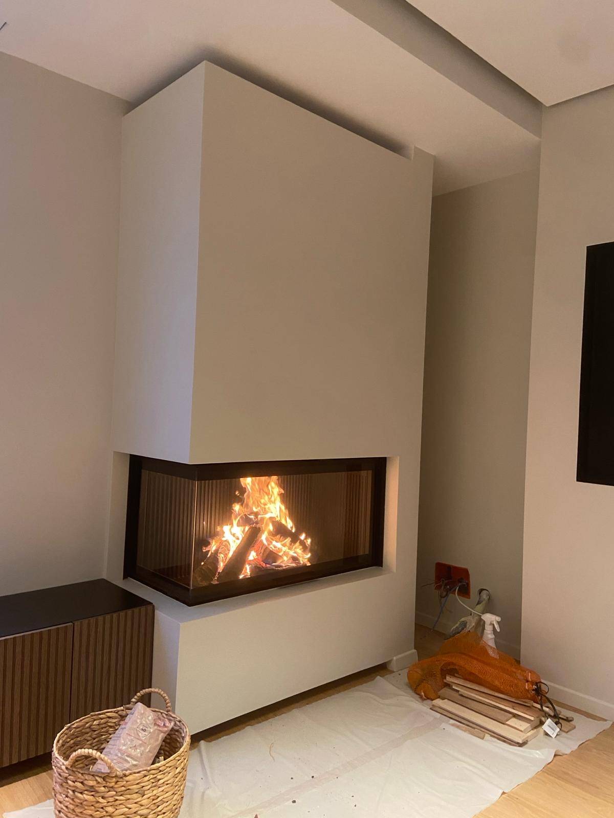 La cheminée avec vitre d'angle est l'élément de décoration parfait pour apporter une touche de modernité et d'élégance à votre intérieur. Grâce à sa forme angulaire, elle s'intègre parfaitement dans les coins de votre pièce, optimisant ainsi l'espace et offrant une vue dégagée sur les flammes dansant dans son foyer.