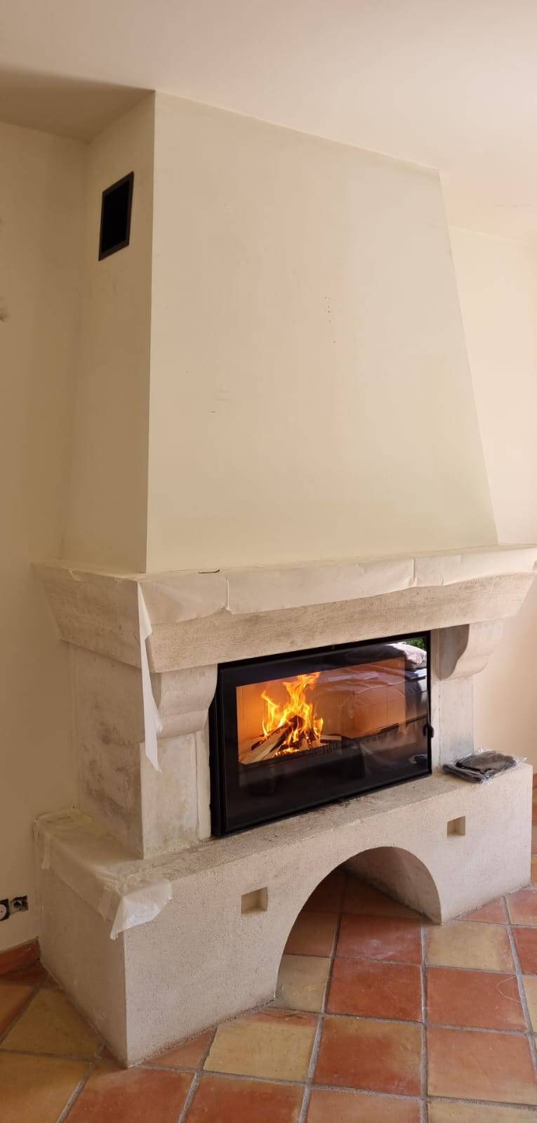 Les inserts, à la fois économiques et pratiques, peuvent également être installés dans une cheminée neuve. Leur porte s'ouvre de manière latérale uniquement, mais pour les créations de cheminée, les foyers fermés à porte escamotable sont souvent privilégiés.