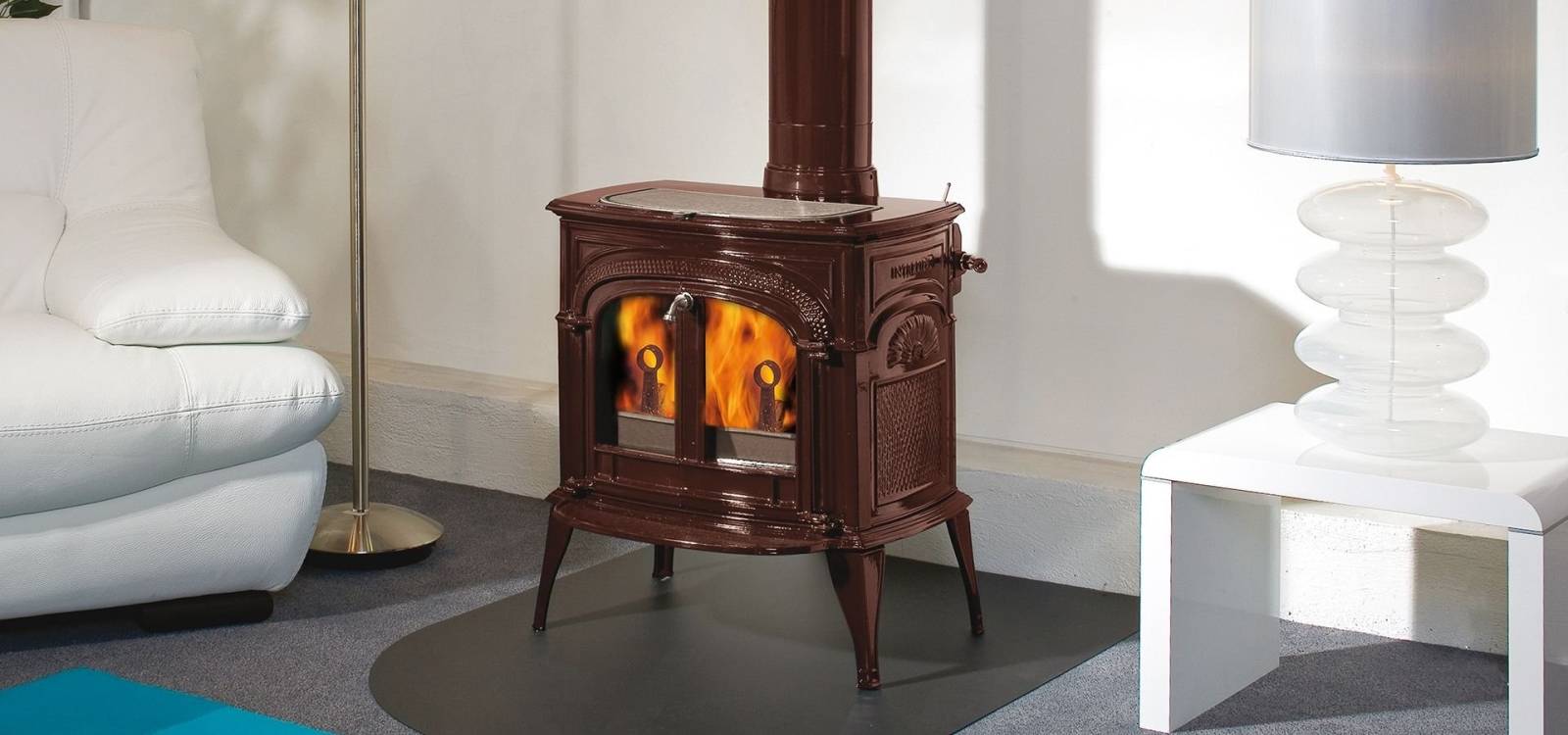 Disponibles en plusieurs finitions élégantes (noir mat, émaillé rouge, ivoire, etc.), les poêles Vermont Castings deviennent de véritables pièces de mobilier, chaleureuses et décoratives.